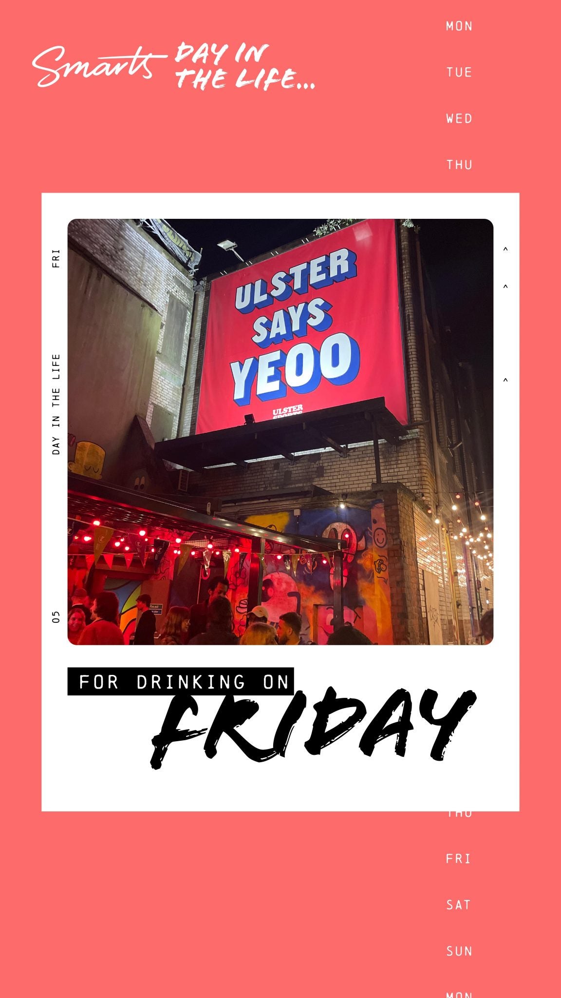 The only logical ending to the week, of course, includes a pint. For a bit of drinking and dancing, the Ulster Sports Club provides some good tunes and bants on a Friday night, perfect to let loose after yet another hard week’s work!